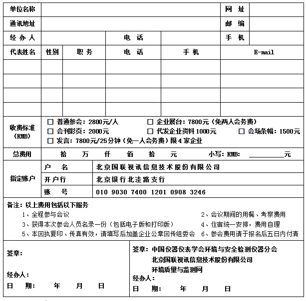 暨仪器应用展示会报名回执